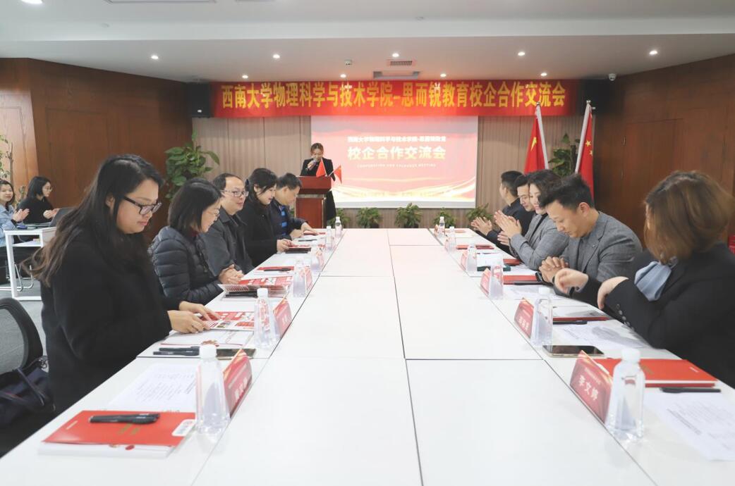 为深入推进校企合作、产教融合,进一步提升基础物理教育人才培养质量,3月10日,h漫 与思而锐教育举行了“学生创新创业实践基地”授牌仪式及合作交流座谈会。党委书记李余廷、党委副书记刘汭雪、h漫 副院长邓涛、教务办主任刘平萍、团委书记贺颖,以及思而锐教育罗春红总经理、夏丽副总经理等公司高层参加会议,会议由思而锐教育李文婷总监主持。