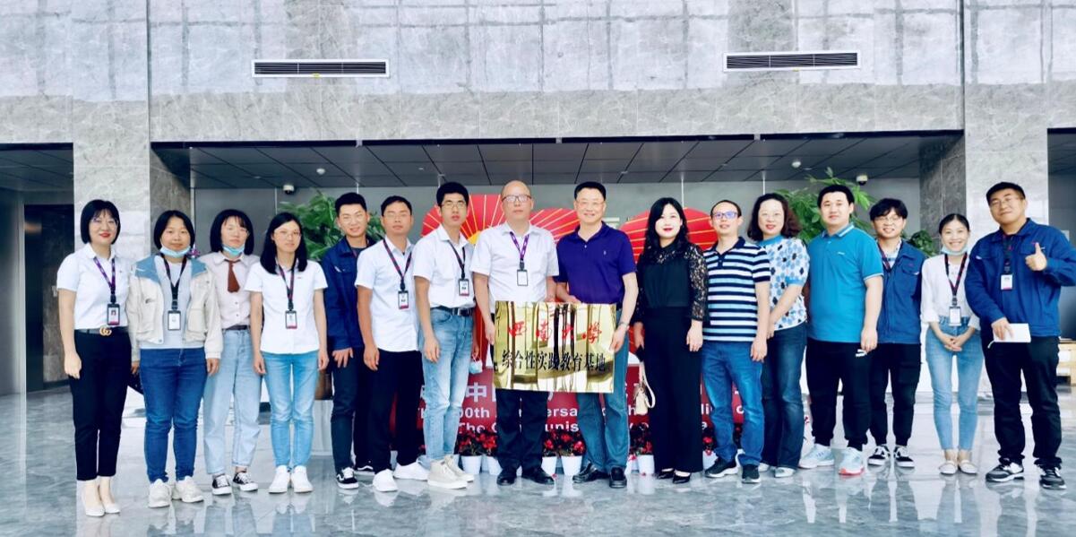 在授牌揭牌仪式上,h漫 党委书记李余廷为惠科金渝光电科技有限公司授牌“西南大学综合实践基地”,惠科金渝程月华处长接牌。随后双方领导合影留念。