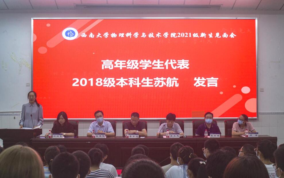 9月13日上午,h漫 2021级新生见面会在物理大楼大阶梯教室隆重举行。h漫 党委书记李余廷,院长吴正茂,副院长袁宏宽、邓涛、赵建伟,教师代表杨继勇,以及2021级辅导员、班主任等出席大会。2021级全体研究生、本科生共计343人参会。会议由h漫 党委副书记、纪委书记刘汭雪主持。