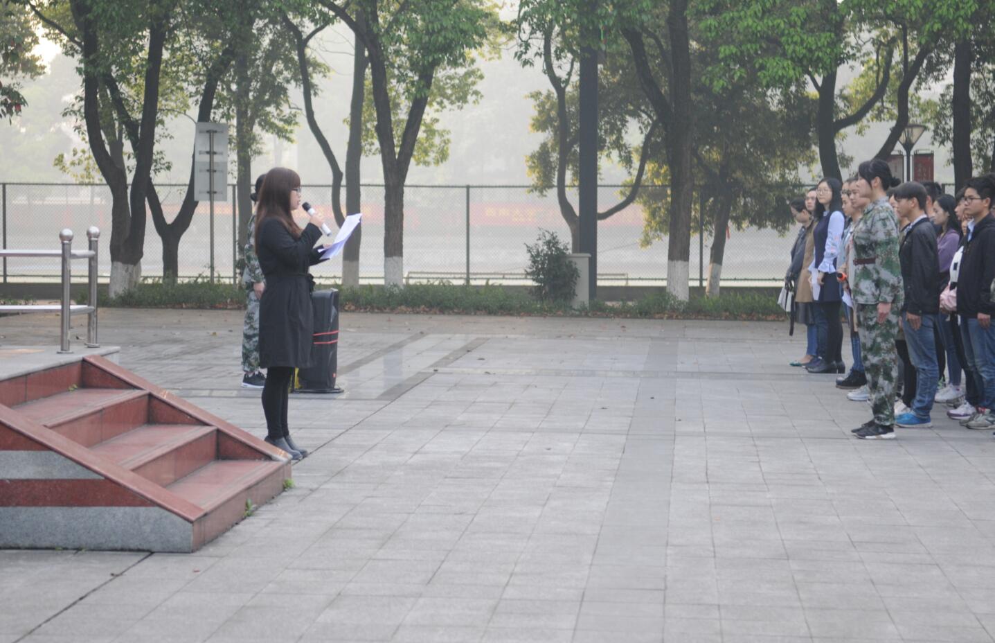 升旗礼毕,院党副委书刘汭雪讲话,她由两会的胜利闭幕引出当代青年应有的历史选择和使命担当,指出当代大学生不应躲避竞争、躲开奋斗,盲目推崇“佛系”文化。随后,刘书记代表h漫 对同学们提出了“勤学博闻,勇于担当”“明辨求真,善于思考”“创新求变,勤于实践”三点希望。