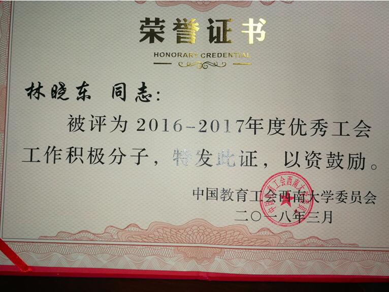在本次教代会上,h漫 李建光书记、李加兴老师、林晓东老师分别获得了2016-2017年度优秀教职工之友、优秀工会工作者、优秀工会工作积极分子称号。