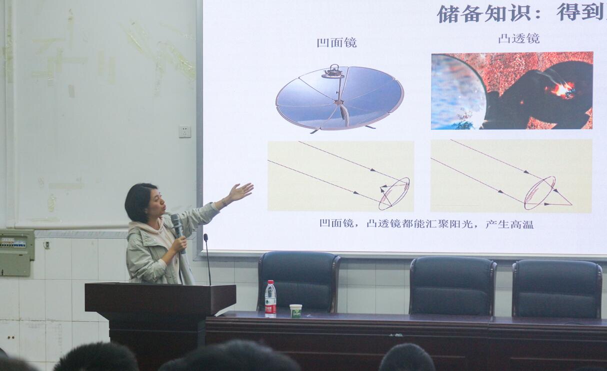 随后,康老师举例展示了可设计研发的科普内容,如简易太阳能热水器、纸杯飞行器等,详细介绍了科普教学设计的流程和重点。现场抽取两组同学,以滴水计时器为例模拟了科普讲解场景。最后,康老师建议同学们应多渠道提升自身科学素养,定期参观学习科技馆博物馆扩宽眼界,加强跨院系交流,查阅文献资料积累科普素材,形成学科融合的教育思想。