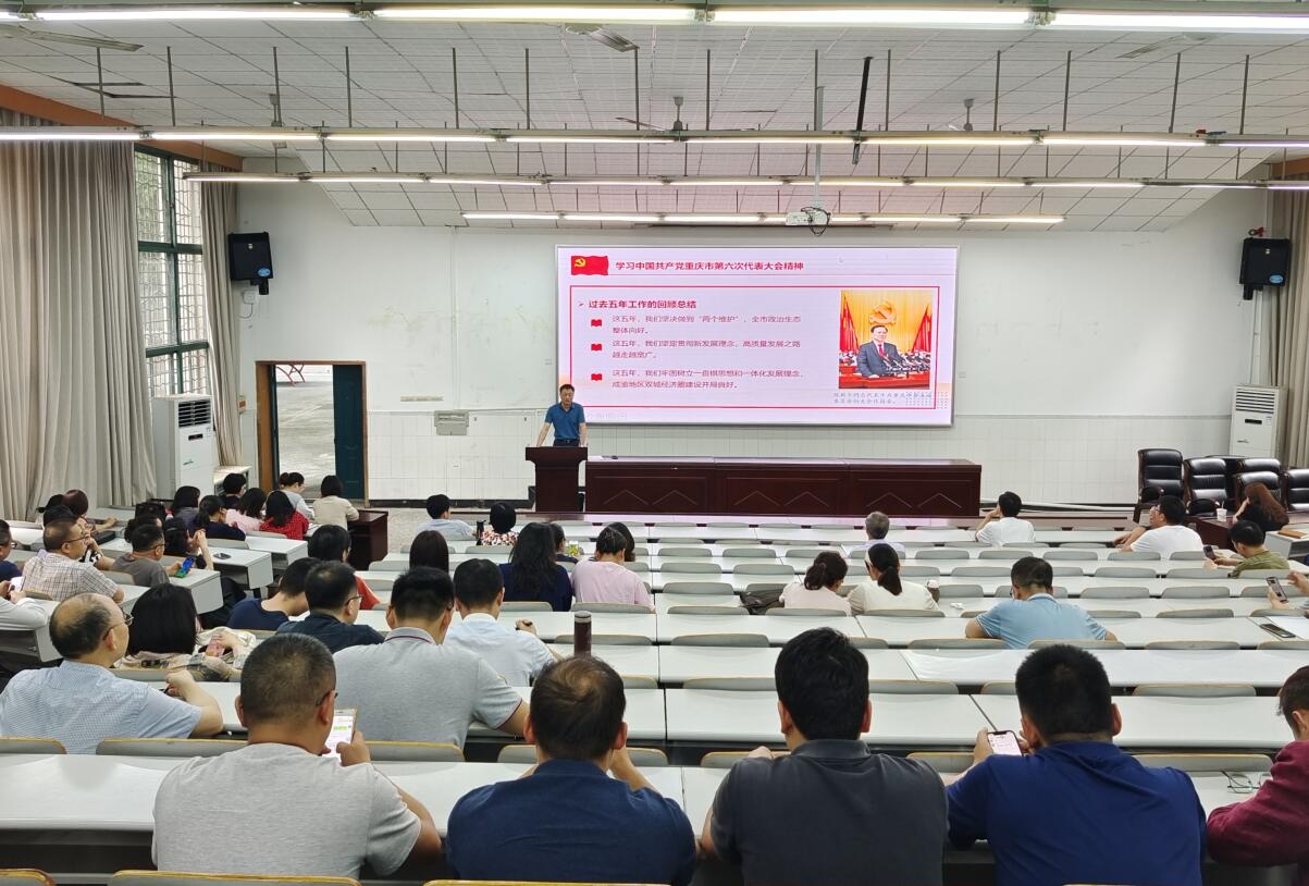 首先,李余廷书记带领大家学习了中国共产党重庆市第六次代表大会精神。他指出,中国共产党重庆市第六次代表大会,是在党的二十大即将召开,我市奋力推进社会主义现代化建设新征程关键时期召开的一次重要会议。全会聚焦把习近平总书记殷殷嘱托全面落实在重庆大地上这条主线,紧扣习近平总书记对重庆提出的营造良好政治生态,坚持“两点”定位、“两地”“两高”目标、发挥“三个作用”和推动成渝地区双城经济圈建设等重要指示要求,系统总结了过去五年重庆的发展成绩,深刻回答了今后五年建设什么样的重庆、怎样建设重庆的战略性问题,并提出了三项重大任务、六个方面目标,科学谋划了未来一个时期重庆高质量发展、高品质生活的美好蓝图。他强调,全会充分体现了以习近平同志为核心的党中央推动重庆新时代高质量发展、创造巴渝儿女高品质生活的时代主题,是重庆全面建设社会主义现代化新征程发出的动员令和冲锋号。接下来,h漫 要把学习宣传贯彻重庆市第六次党代会精神作为当前和今后一个时期的重要政治任务,多层次、多角度抓好宣传宣讲,迅速将第六次党代会的精神实质传达到每一位师生,全力以赴推动市第六次党代会精神在h漫 落地落实、见到实效,以实干实绩迎接党的二十大胜利召开。