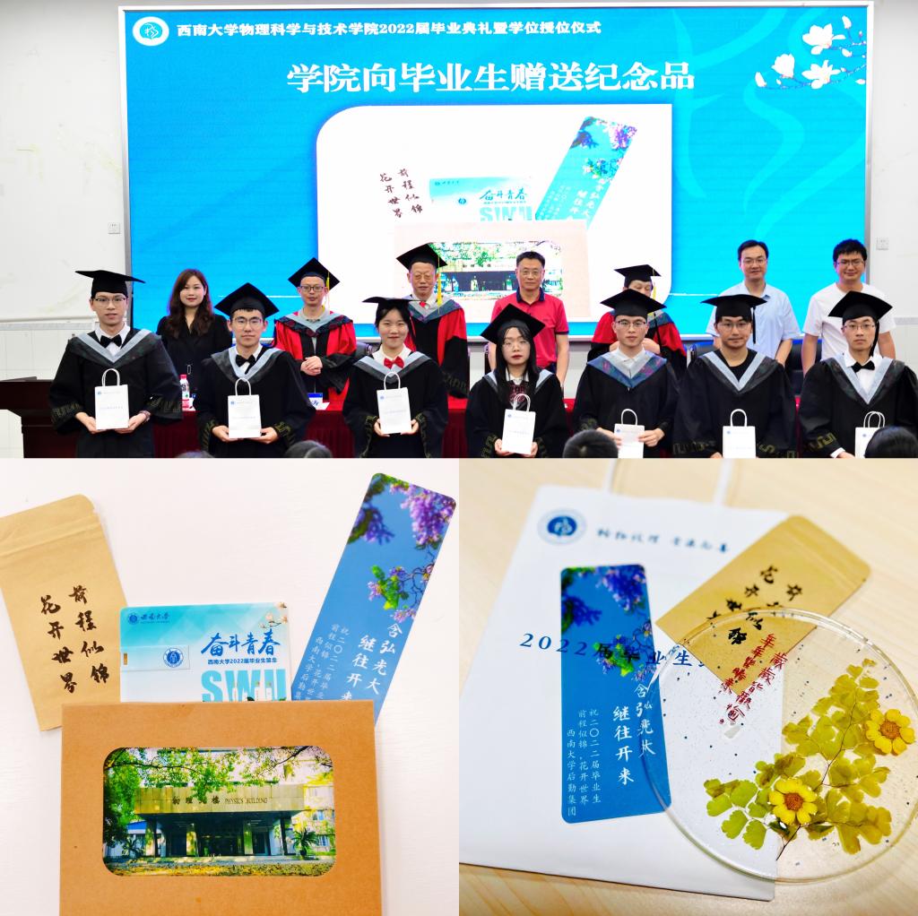 随后,主席台就坐的领导老师与毕业生互赠毕业纪念礼物,h漫 精心准备了格桑花种、书记院长签名的额h漫 风景明信片。“格桑”是“美好时光”或“幸福”的意思。今夏校园处处格桑花开,与蓝花楹交相辉映,这其中还有毕业生党员同志亲手种下的成果。h漫 与后勤集团携手将格桑花种赠予毕业生们,之前后勤集团党委还向全体毕业生党员赠送了用格桑花制作的杯垫。2022届本科毕业生从师生需求考虑准备了仪容镜相赠,“正衣冠、端品行”,立志秉承h漫 正直、严谨的优良作风,行稳致远。