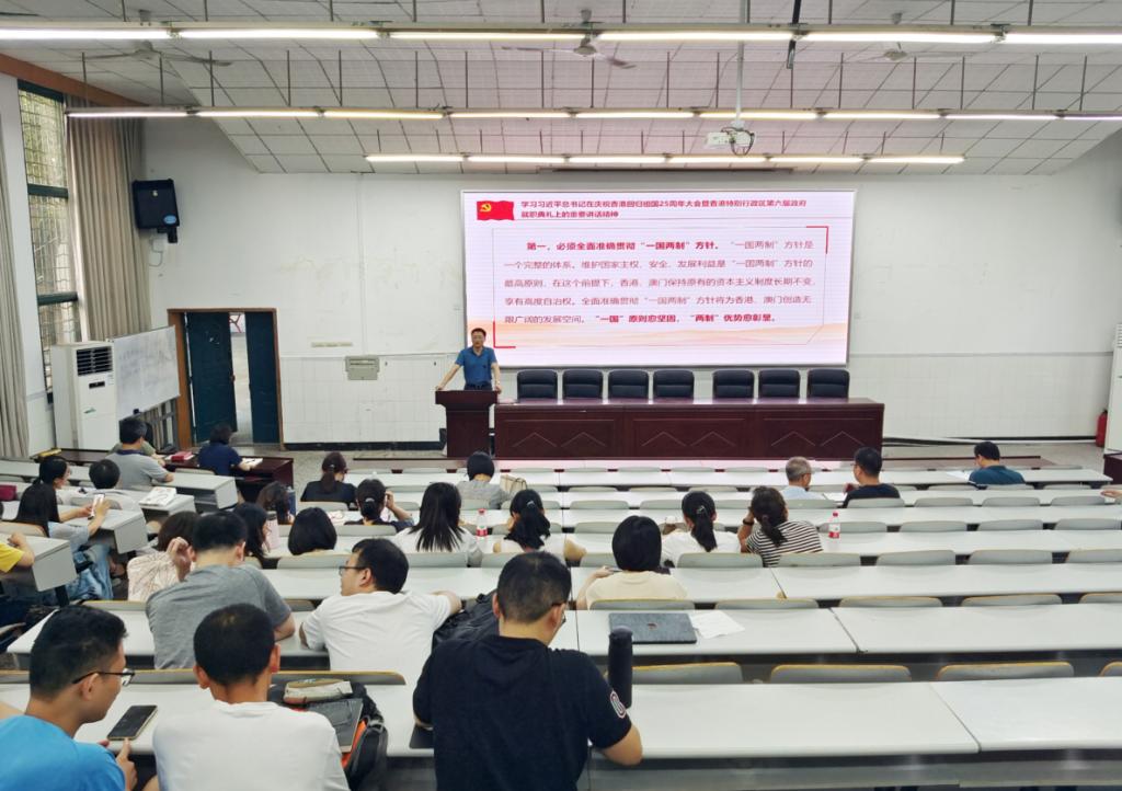 7月8日下午,h漫 在大阶梯教室举行2022年第六次教职工政治理论学习会。学习会由h漫 党委书记李余廷主持,h漫 全体教职工参加了此次学习。