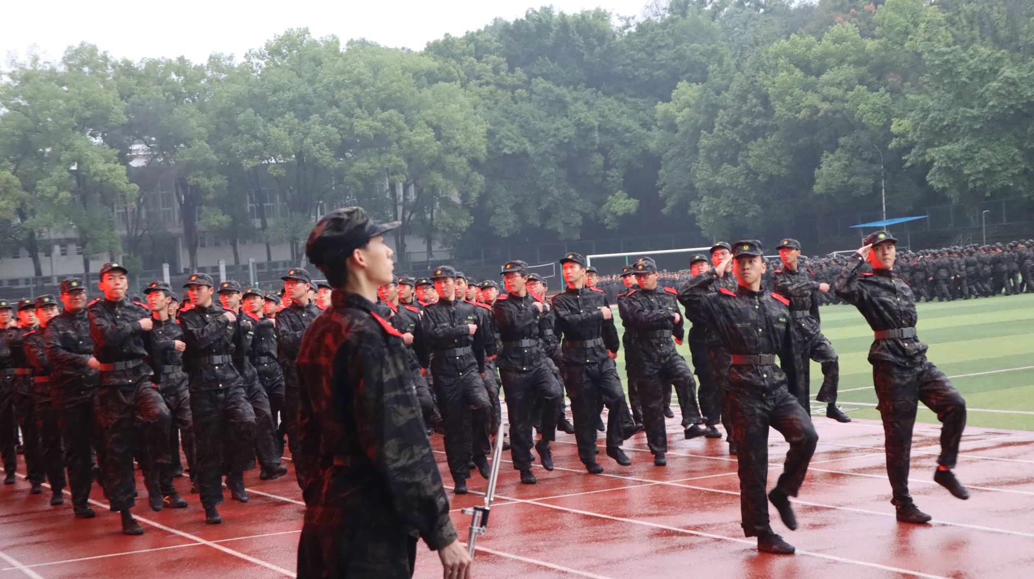 的全男生分列式方队齐步换正步,抬头刹那,目光如炬。他们用整齐的队列、饱满的精神回馈了师长的期望与教官的付出,为坚持不懈、团结进步的14天画上了圆满句号。