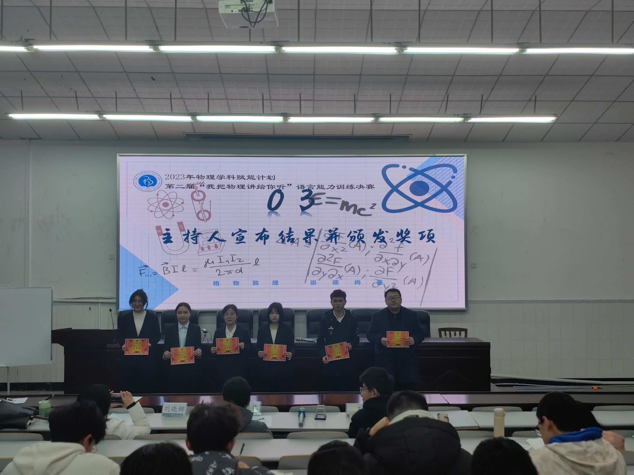 为提高学生物理学科素养,提升语言表达能力,增强就业竞争力,12月17日下午h漫 在物理大楼大阶梯教室举办了2023年“物理学科素养赋能计划”之第二届“我把物理讲给你听”课前五分钟语言能力训练汇报比赛决赛。