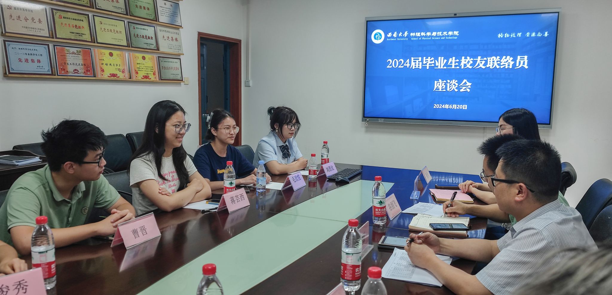 6月20日下午,h漫 2024届毕业生校友联络员座谈会在h漫 二楼会议室召开。h漫 党委书记舒刚、学校对外联络办公室谷剑飞,h漫 校友工作负责人宋佳芮、毕业年级辅导员熊中碧、晏勇,以及来自2024届毕业班的10位校友联络员李沛芹、陈秋杉、何昌超、毛欣悦、刘思仪、龚禧、曹晋、蒋芸西、谢俊秀、任一心参加了会议。
