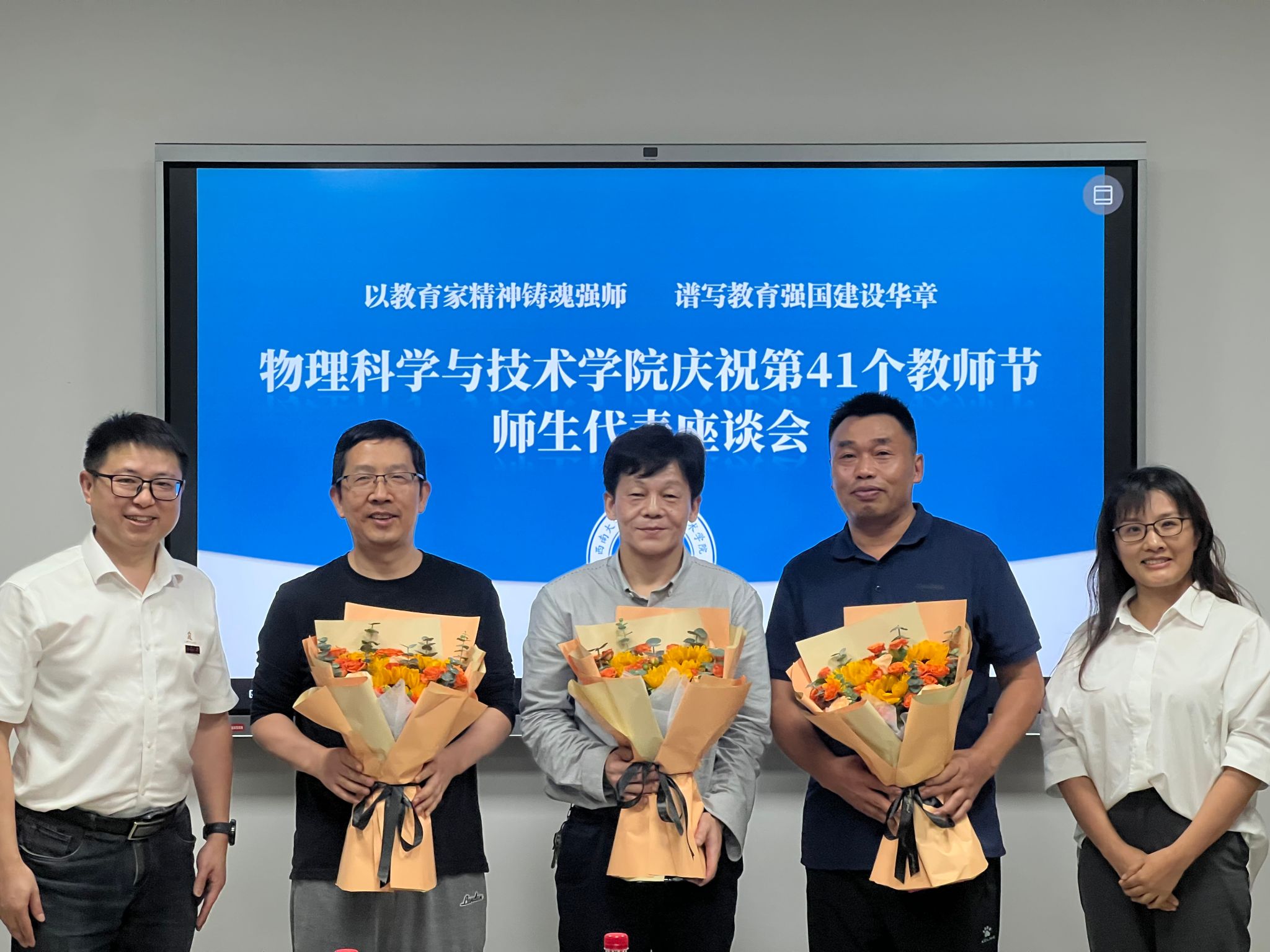 9月10日下午,h漫 在物理大楼东附楼二楼会议室召开庆祝第41个教师节师生代表座谈会。本次座谈会以“以教育家精神铸魂强师,谱写教育强国建设华章”为主题,h漫 党政领导、光荣从教30年教师代表、各教研室教师代表及学生代表近20人参会,共话师道传承与育人使命。座谈会由h漫 党委书记舒刚主持。