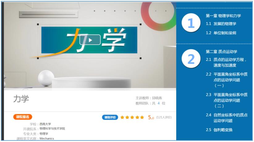 邱晓燕教授2009年组建《力学》教学团队,先后获得西南大学精品课程、BB平台课程、精品共享课程、第三批在线开放课程,经过多年的精心打造,今年成功入选重庆市2020年高校线上一流课程。
