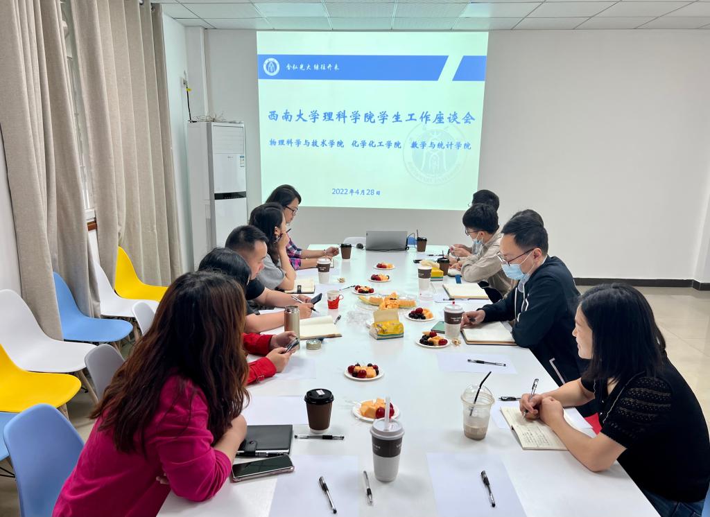 为进一步强化沟通、增进交流、取长补短,不断提升h漫 学生工作队伍能力素质建设,4月28日下午,h漫 特邀请化学化工h漫 、数学与统计h漫 学生工作队伍来院进行学生工作主题座谈。h漫 党委副书记刘汭雪、化学化工h漫 党委副书记张磊、数学与统计h漫 党委副书记田春荣与各h漫 辅导员代表共计10余人参与了座谈。