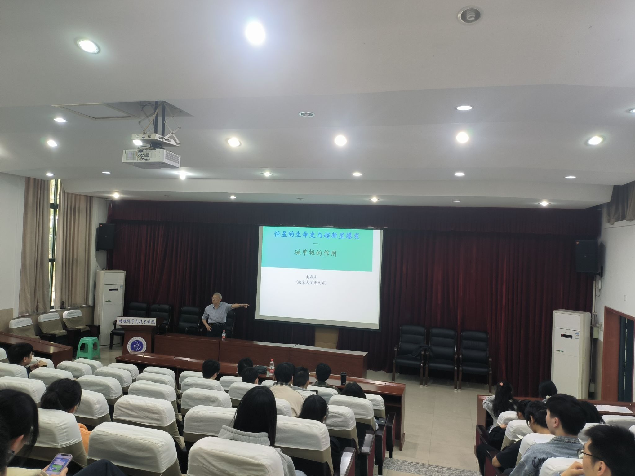 2023年4月26日下午,南京大学彭秋和教授应邀来h漫 做题为“恒星生命史和超新星爆发——磁单极的作用”的学术报告,吸引了众多师生前来聆听。