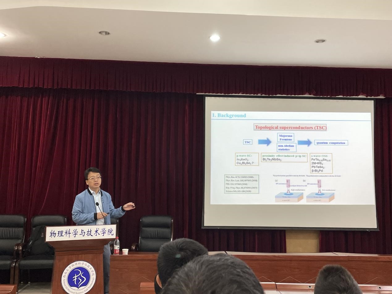 2023年5月9日上午,中国科h漫 高能物理研究所王保田副研究员应邀来h漫 进行学术交流,为大家带来一场题为“Superconductivity, CDW and Topological State in Hexagonal-lattice Materials”的精彩报告。本次报告会由袁宏宽教授主持,h漫 50余名师生聆听了此次报告。