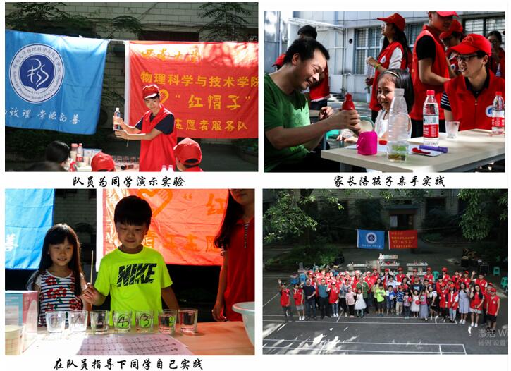 2017年,“红帽子”努力寻找志愿服务活动与学生成长的契合点,以不断创新、注重体验的形式,以h漫 成功申请重庆市科普教育基地、以成功申报西南大学“科普空间站”网络文化工作站为契机,大力开展科学体验营等青少年科普教育活动。科学体验营共分为科学表演秀、科技小制作和亲子互动游戏等三大类子活动,活动过程中每组家庭都有一名志愿者指导陪同,青少年游戏互动中在探寻科学的魅力和真谛。