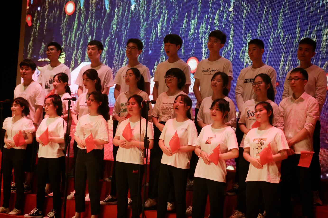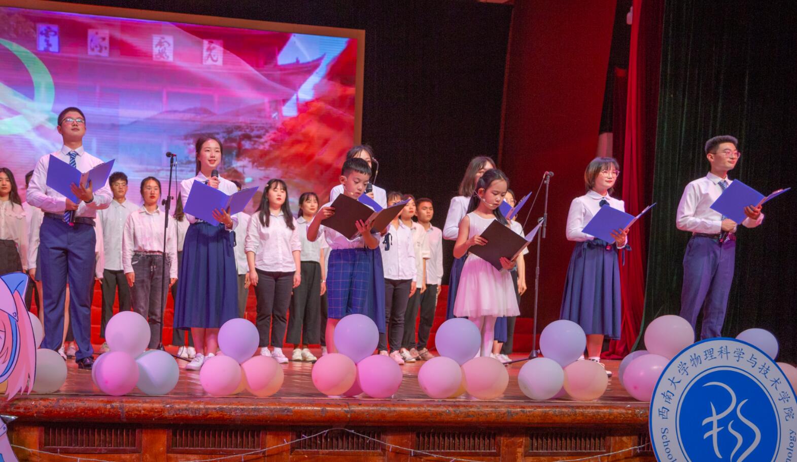 第二篇章记录了成长的岁月,寓意当初稚嫩懵懂的少年,在丰富的校园经历中逐渐羽翼丰满。篇章视频缅怀了钱学森、邓稼先等物理学家,弘扬了执着追求的科学精神和自强不息的奋斗精神,令人钦佩动容。研究生代表带来了合唱《我和我的祖国》,表达了物院学子对国家、对民族最深沉的爱;情景剧《红帽传承咏初心》展现了一代又一代物理人接续志愿服务行动,凝聚成了永不褪色的红帽子,引起了全场观众的深深共鸣。