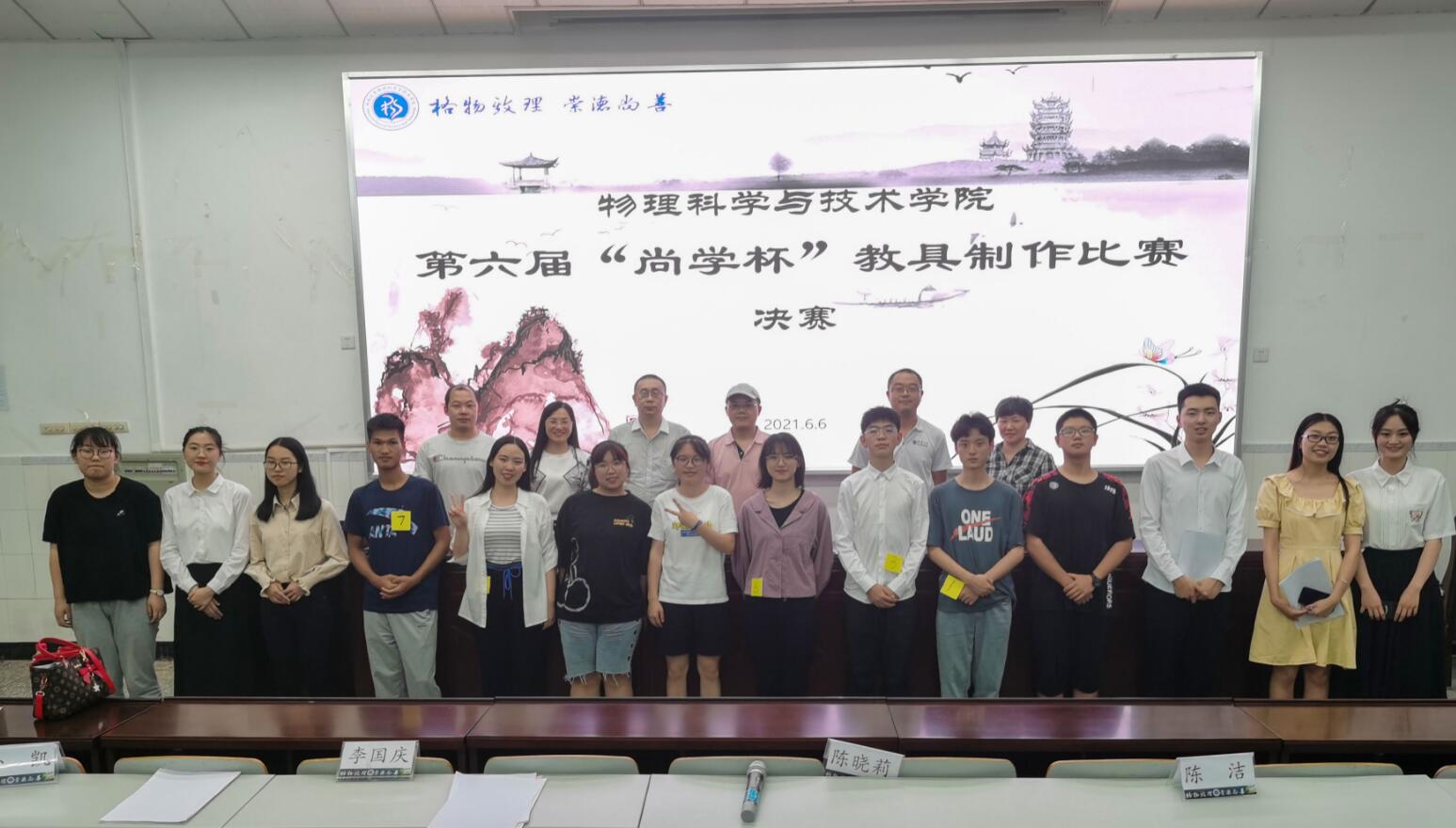 为提高h漫 本科生的实验操作能力和教具制作水平,6月6日晚19:00,h漫 第六届“尚学杯”学术科技文化节——教具制作比赛决赛在物理大楼大阶梯教室举行。来自2018-2020级的同学组成的九个小组参赛,李国庆、张巧明、孙凯、陈洁、贾伟尧、陈晓莉六位老师应邀担任评委。