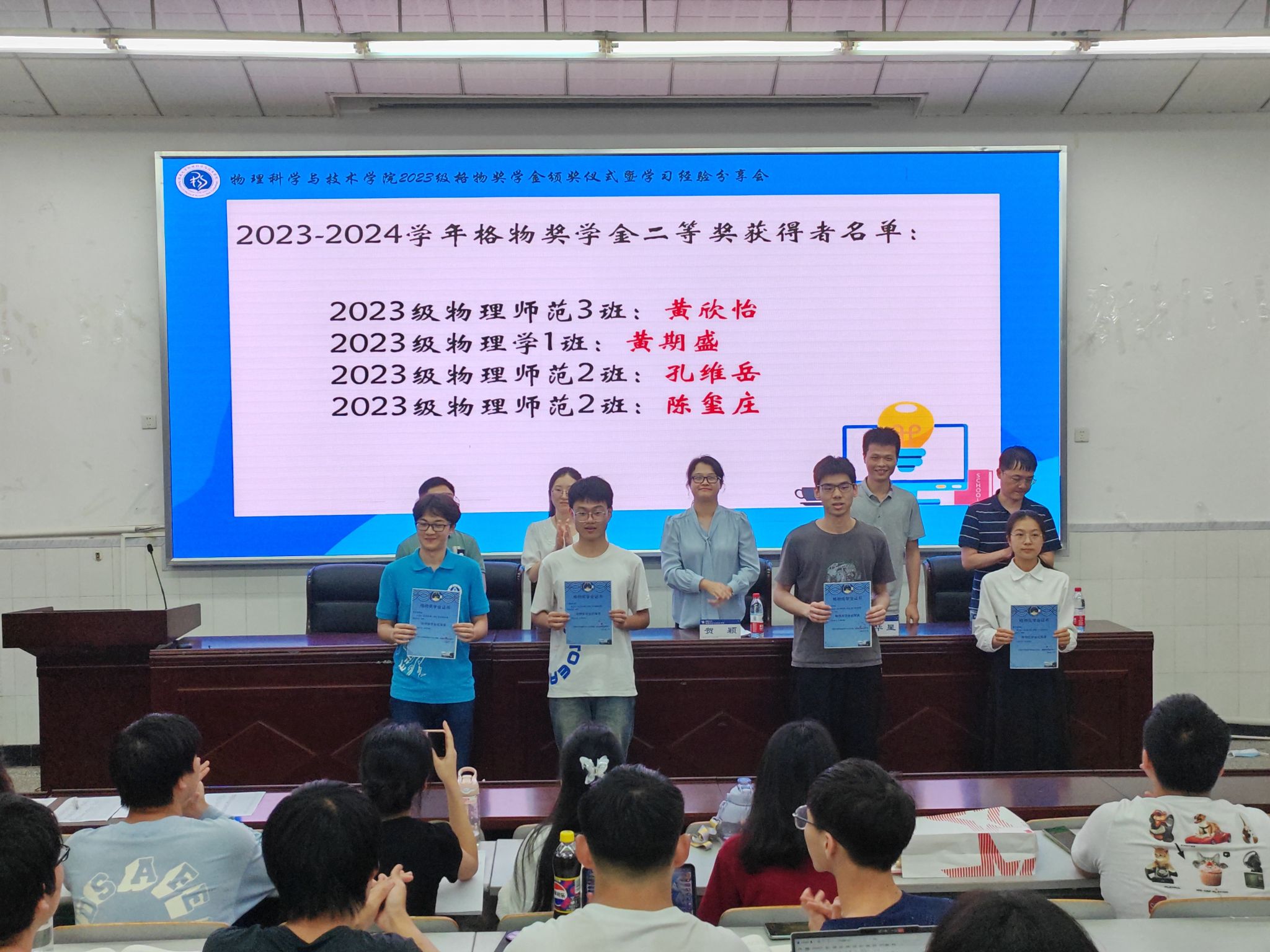 为进一步加强学风建设,鼓励学生刻苦学习,全面发展,5月22日下午17:00,h漫 在大阶梯教室举办2023级“格物奖学金”颁奖仪式暨学习经验分享会。2023级辅导员贺颖,班主任时珂、王韬、朱华星、石文武和245名大一同学参加颁奖仪式,仪式由2023级黄梓恒和陈玺庄同学主持。