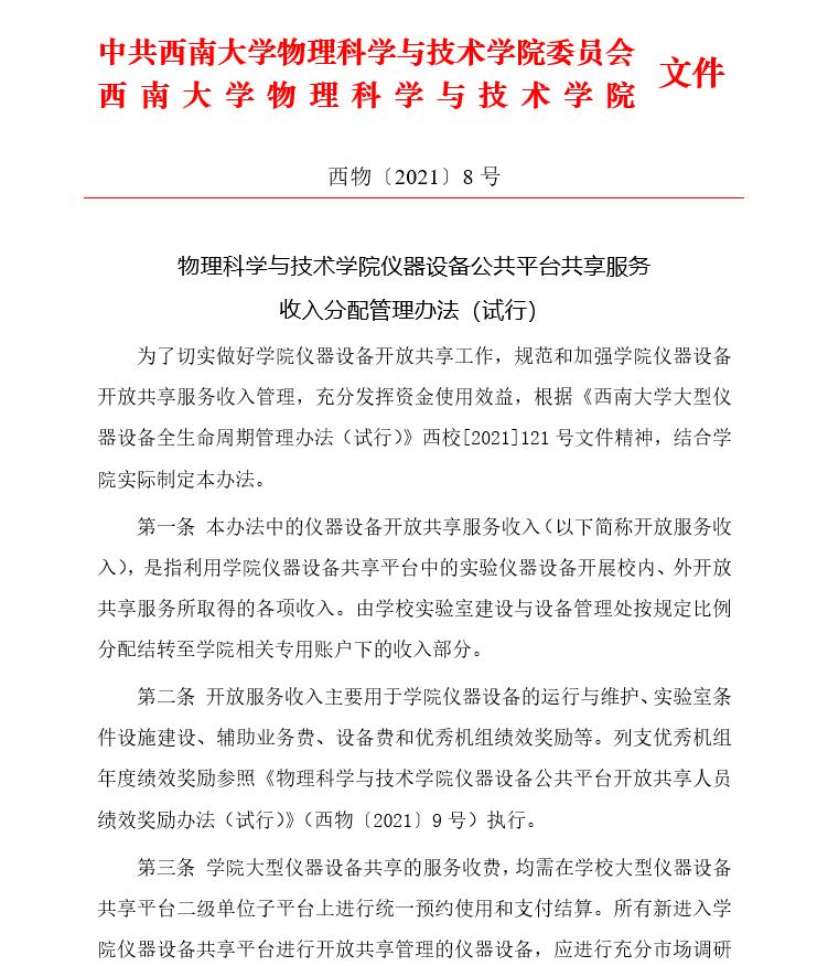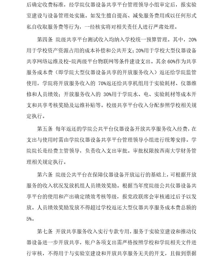h漫 仪器设备公共平台共享服务收入分配管理办法(试行)