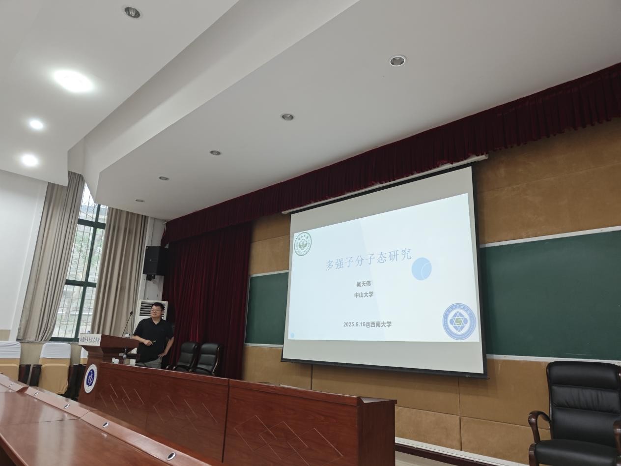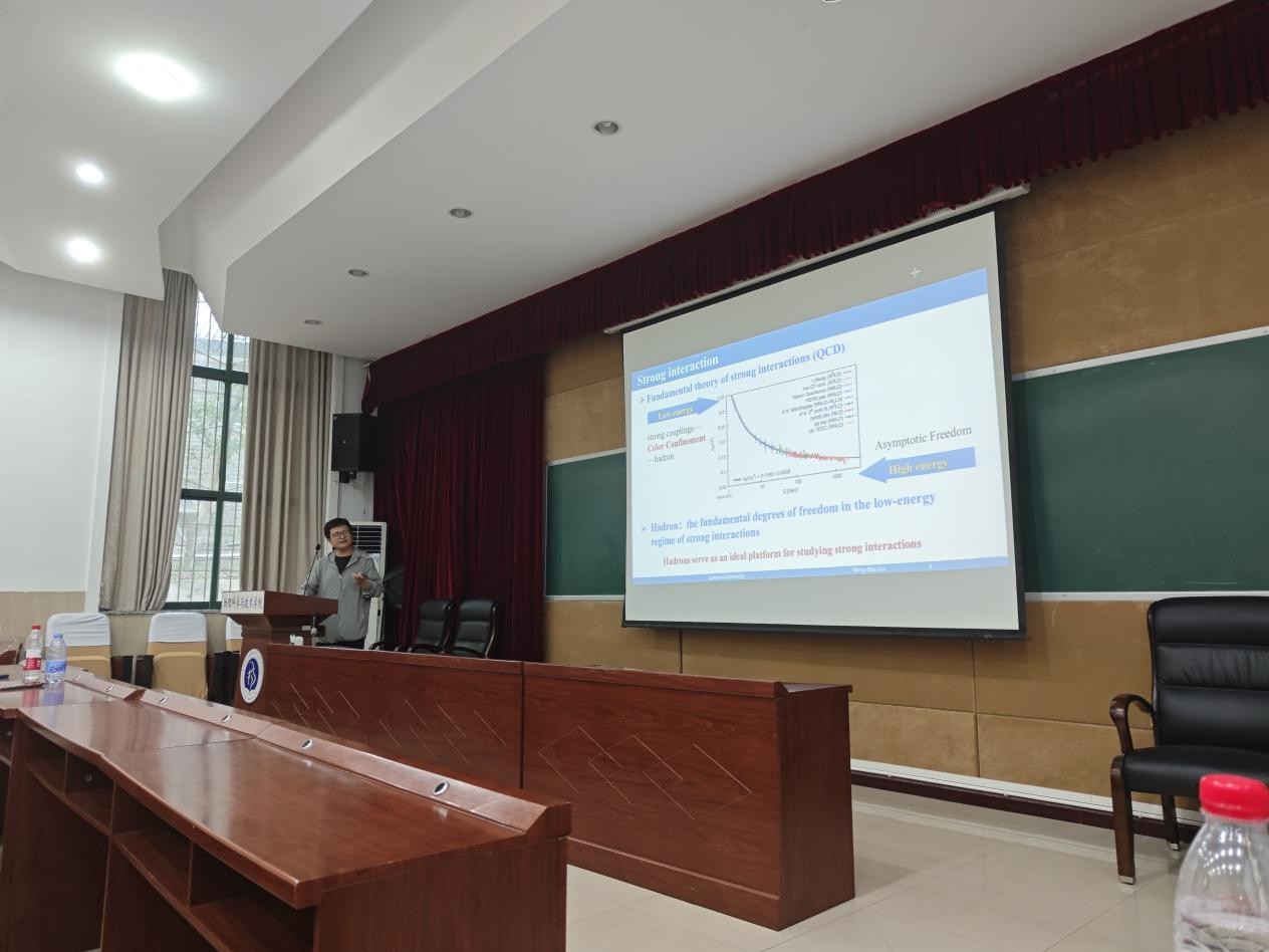 进行学术交流,为大家带来名为《Probing DK interaction in B decays and heavy-ion collisions》、《 Implication of the existence of a