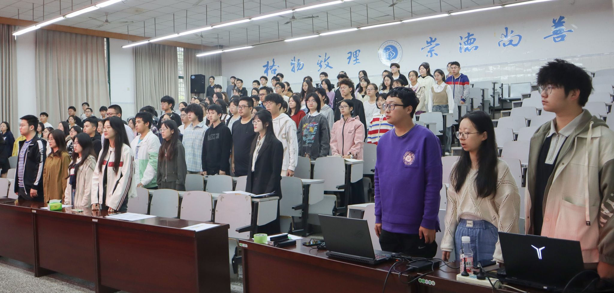 最后,全体师生起立齐唱团歌,团校开班典礼顺利落下帷幕。