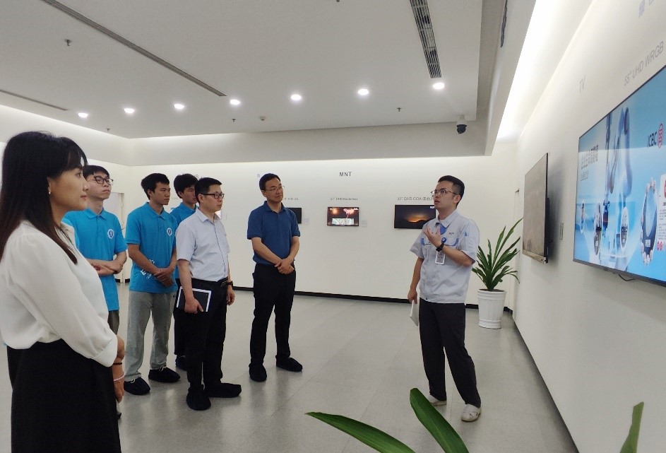 为更好地发挥高校人才培养、科学研究、社会服务等功能,进一步加强校企合作、推动产教融合,促进学科专业建设,开拓实习就业岗位,73日,h漫 党委书记舒刚带队赴京东方科技集团重庆京东方光电科技有限公司走访调研,h漫 党委副书记娄霞、副院长赵建伟、本科生辅导员晏勇及部分学生代表参与走访。重庆京东方光电科技有限公司人力资源部部长刘易文、工艺部部长熊永、人力资源部HR郝佳慧等陪同参观。
