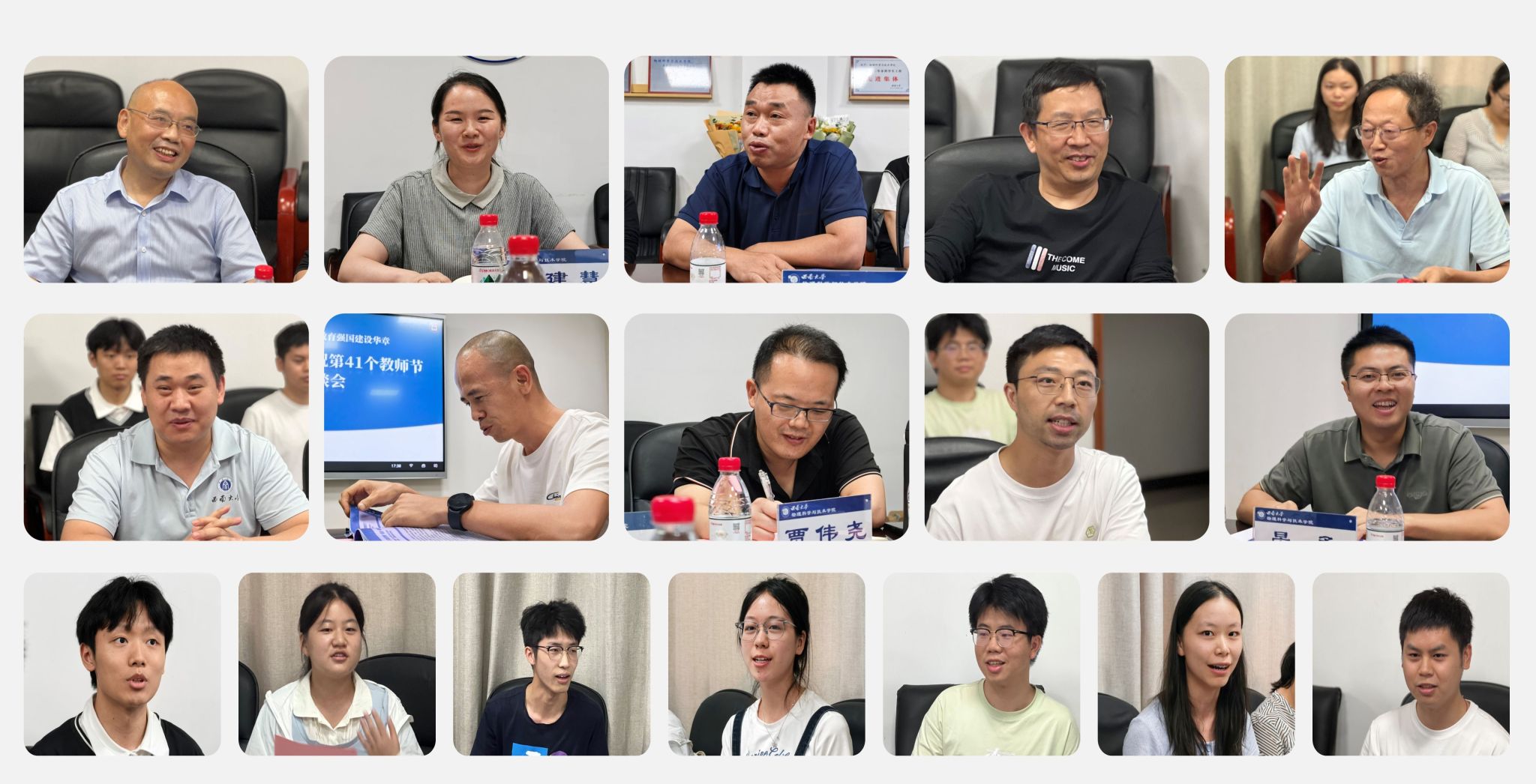 9月10日下午,h漫 在物理大楼东附楼二楼会议室召开庆祝第41个教师节师生代表座谈会。本次座谈会以“以教育家精神铸魂强师,谱写教育强国建设华章”为主题,h漫 党政领导、光荣从教30年教师代表、各教研室教师代表及学生代表近20人参会,共话师道传承与育人使命。座谈会由h漫 党委书记舒刚主持。