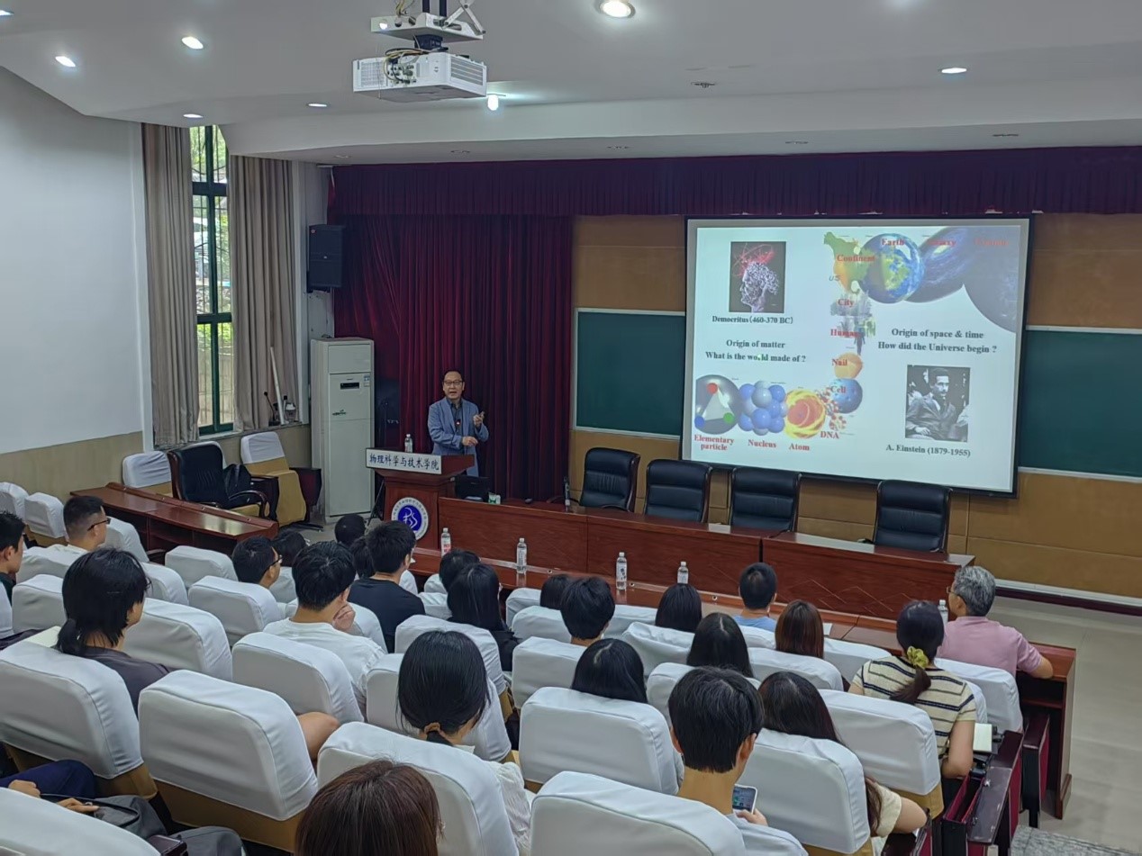 8日上午,Kajino教授在小阶梯教室作题为"Origin and Evolution of the Universe and Matter: A View of Asian Scientists"的学术报告。报告由h漫 王龙军教授主持,40余位师生参会。Kajino教授以"我们从哪儿来?我们要走向何方?"为切入点,从粒子宇宙学与核天体物理学视角梳理现代科学发展脉络,探讨中微子质量层次未解之谜,并揭示基础物理学、天文学、陨石空间科学与天体生物学等领域的交叉融合问题。