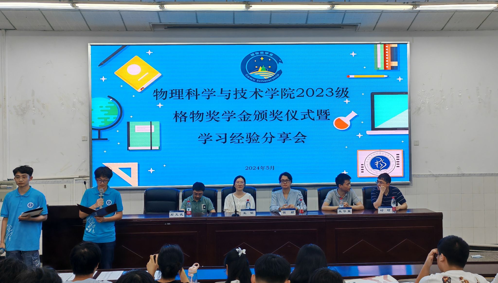 为进一步加强学风建设,鼓励学生刻苦学习,全面发展,5月22日下午17:00,h漫 在大阶梯教室举办2023级“格物奖学金”颁奖仪式暨学习经验分享会。2023级辅导员贺颖,班主任时珂、王韬、朱华星、石文武和245名大一同学参加颁奖仪式,仪式由2023级黄梓恒和陈玺庄同学主持。